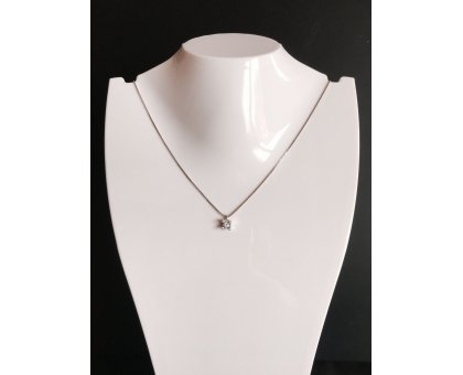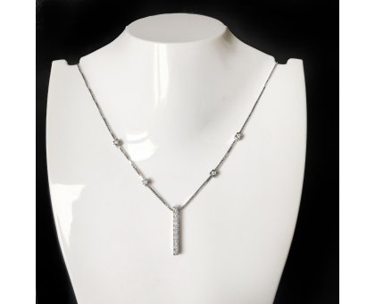 ° Girocollo in oro bianco kt. 18 = 750 % ° Peso grammi 2,30 ° Lunghezza girocollo cm. 41,5 con chiusura a moschettone ° Girocollo con maglia veneziana di spessore mm. 0,7 ° Pendente a scorrere di forma barretta di dimensione mm. 15 X 4 ° Incastonati nella barretta n° 4 diamanti taglio brillante per un totale di carati 0,12 colore H ° Accompagnato da certificato di garanzia ° Prodotto in Italia ° Inviato nella sua confezione regalo e accompagnato da scontrino fiscale o, a richiesta fattura